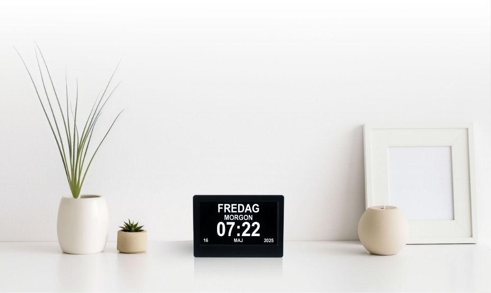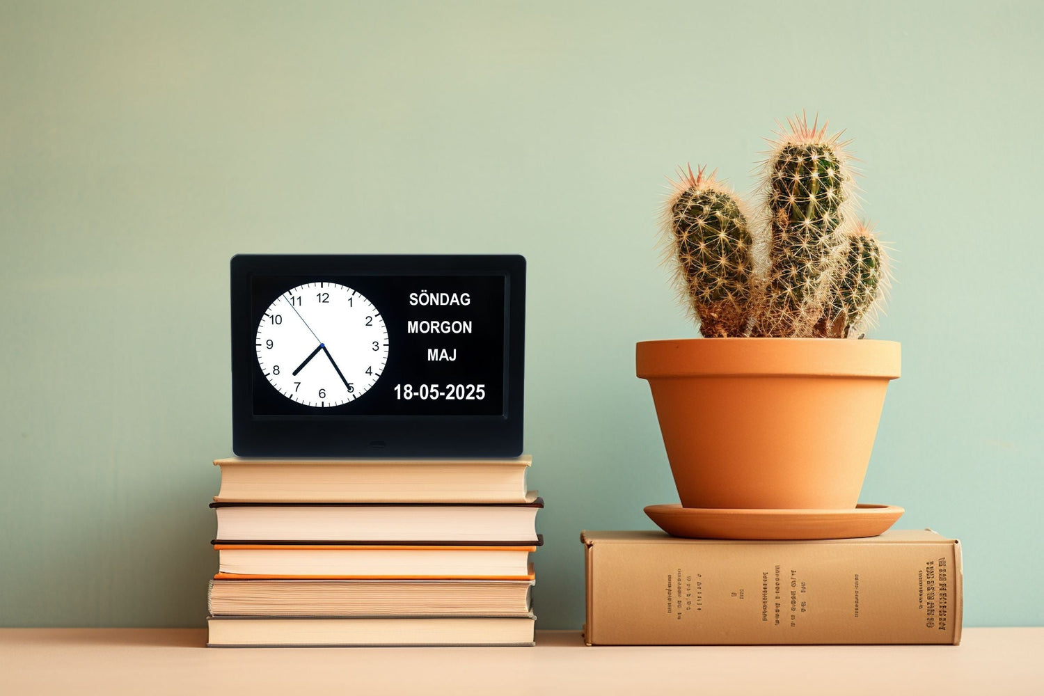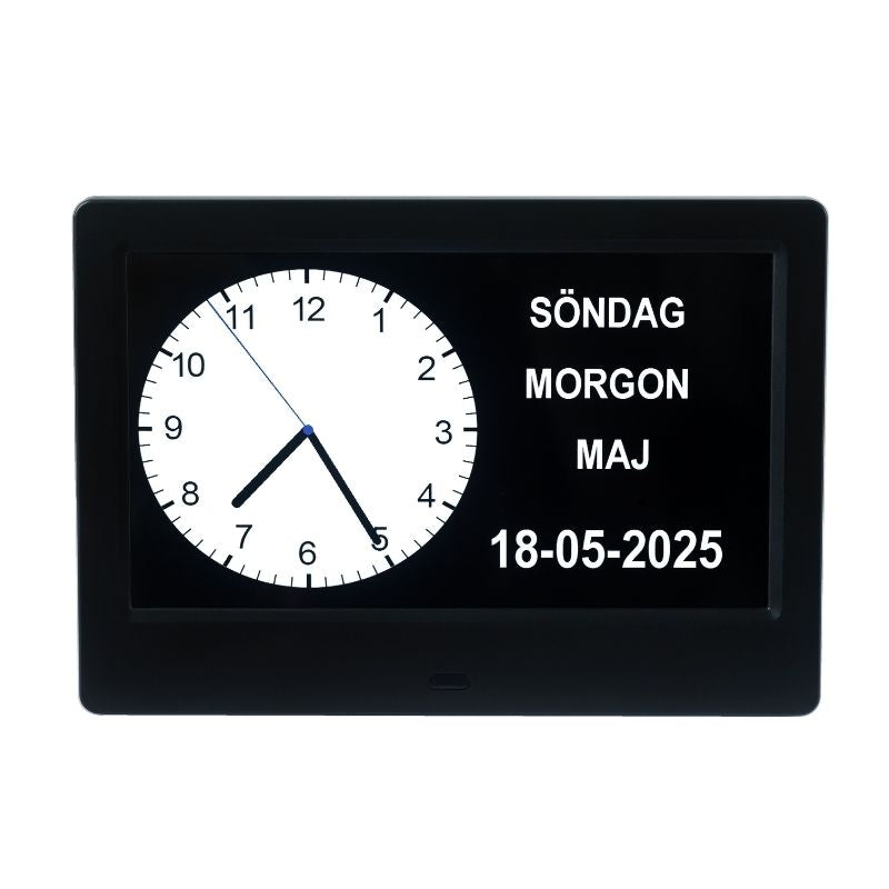 Vanliga klockor och mobiler kan skapa förvirring. Kalenderklockan är utvecklad för att vara så enkel som möjligt - ingen stress, inga distraktioner. Bara ren tydlighet som ger lugn och trygghet.